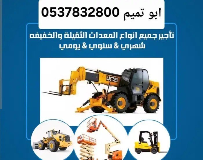 يوجد لدينا للايجار الشهري واليومي ولسنوي🌟 سيزر لفت ومار لفت رافعات JCB, موديل 2017 رافعات شوكية, موديل 2017 رصاصات كرينات... لوبدات .شيولات ببكات س وجميع انواع المعدات ..💫💫 0537832800...لتواصل....