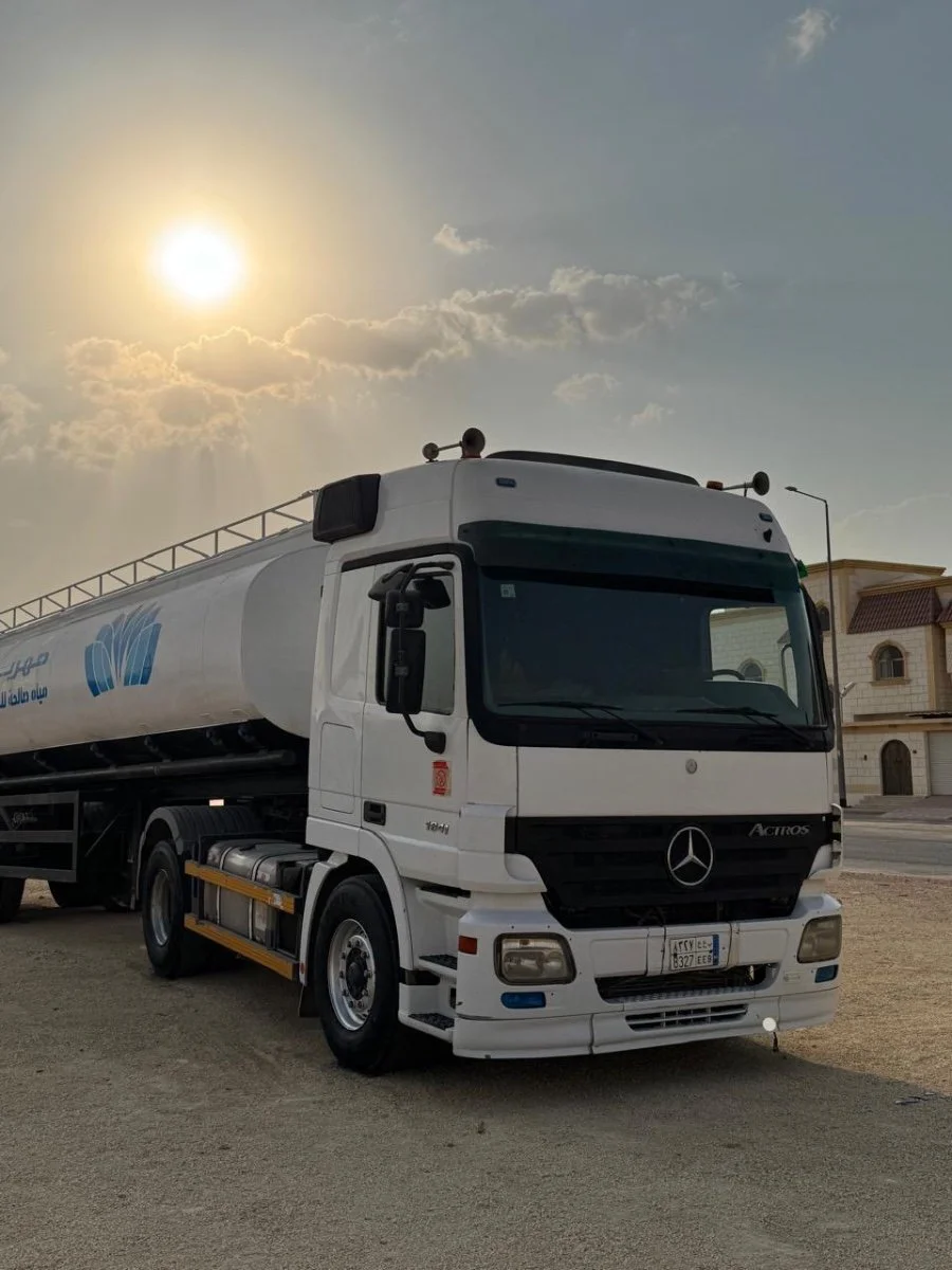 تريلة ماء اكتروس موديل ٢٠٠٥ حجم ١٨٤١ مع تيدر ماء ٣٢ طن بدون ملاحظات جاهز للعمل ولا يحتاج شيء لوحات نقل خاص قير كهرب السياره مع التانكي لاتحتاج شيء جاهزة جوال 0540011788