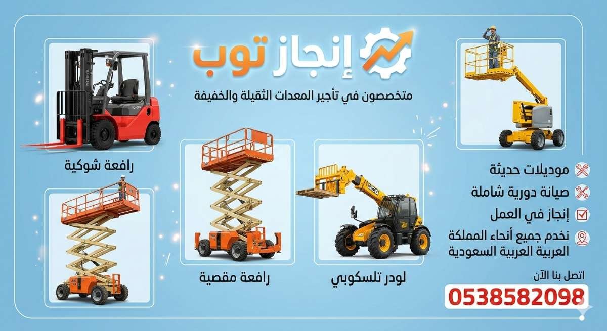 انجاز توب لتاجير المعدات الثقيله والخفيفه