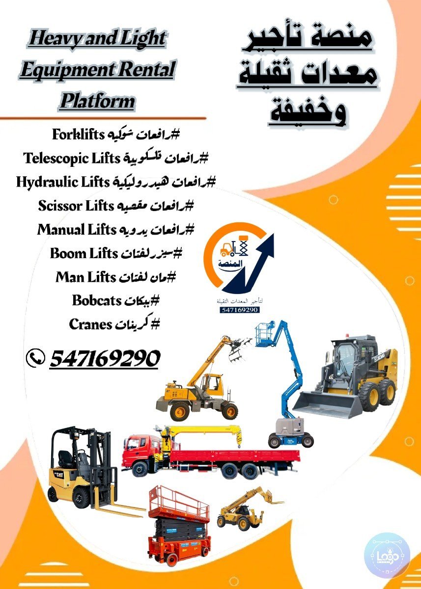 جميع المعدات الثقيلة والخفيفه للإيجار All Heavy and Light Equipment for Rent