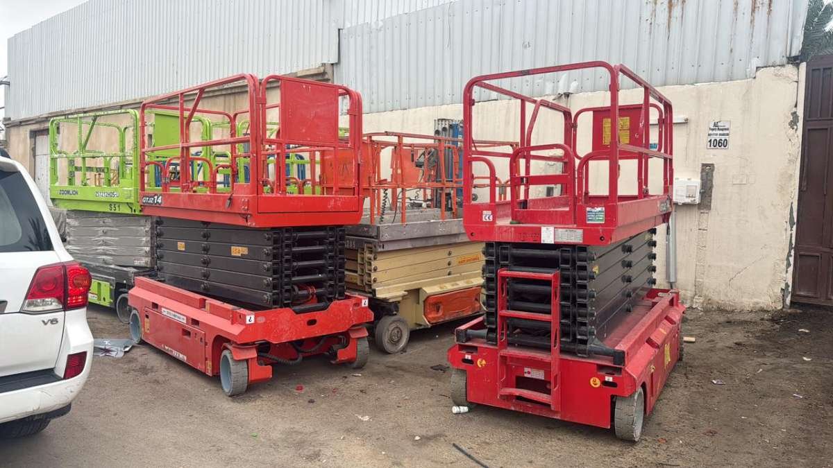 1 _ سيزرلفت ( Scissor Lift) متوفر لدينا للايجار بالارتفاعات التالية : _ 6 متر ( كهرباء) _ 8 متر ( كهرباء) _ 10متر ( كهرباء) _ 12 متر ( كهرباء) _ 14 متر ( كهرباء) _ 16 متر ( كهرباء ) _ 18 متر ( ديزل) ** كل أنواع السيزر لفت المذكور أعلاه من الارتفاعات موديل حديث وأوراقها كاملة شهادة تأمين وتيوفي TUV CERTIFICATION. 2_ مان لفت ( manlift) متوفر لدينا للايجار بالارتفاعات التاليه : _ 12 متر _ 14 متر _ 16 متر _ 20 متر _ 22 متر _ 24 متر _ 28 متر _ 30m,34, 36m, 40m,44m,46m,54m