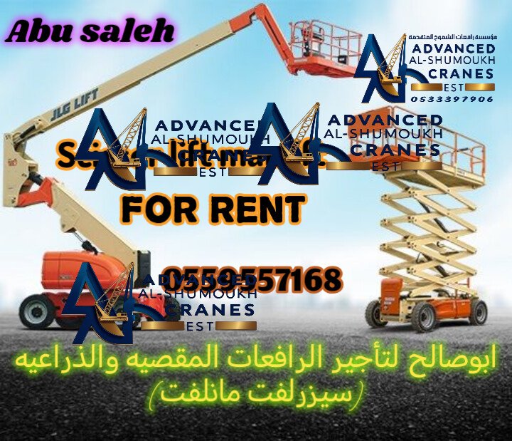 تأجير الرافعات الشوكيه الرافعات المقصيه أنواع الروافع المتوفرة: مؤسسة رافعات الشموخ المتقدمة العالمية 0559557168 * روافع مقصية (سيزر لفت): * سيزر لفت 8 أمتار * سيزر لفت 10 أمتار * سيزر لفت 12 مترًا * سيزر لفت 14 مترًا * سيزر لفت 16 متراً * سيزر لفت 18 مترًا * سيزر لفت 20 مترًا * روافع ذراعية (مان لفت): * مان لفت 8 أمتار * مان لفت 10 أمتار * مان لفت 12 مترًا * مان لفت 14 مترًا * مان لفت 16 مترًا * مان لفت 18 مترًا * مان لفت 20 مترًا * روافع شوكية (فوركلفت): أنواع ال