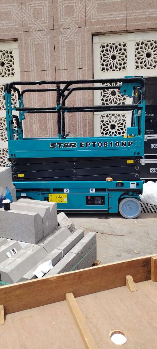 1 _ سيزرلفت ( Scissor Lift) متوفر لدينا للايجار بالارتفاعات التالية : _ 6 متر ( كهرباء) _ 8 متر ( كهرباء) _ 10متر ( كهرباء) _ 12 متر ( كهرباء) _ 14 متر ( كهرباء) _ 16 متر ( كهرباء ) _ 18 متر ( ديزل) ** كل أنواع السيزر لفت المذكور أعلاه من الارتفاعات موديل حديث وأوراقها كاملة شهادة تأمين وتيوفي TUV CERTIFICATION. 2_ مان لفت ( manlift) متوفر لدينا للايجار بالارتفاعات التاليه : _ 12 متر _ 14 متر _ 16 متر _ 20 متر _ 22 متر _ 24 متر _ 28 متر _ 30m,34, 36m, 40m,44m,46m,54m