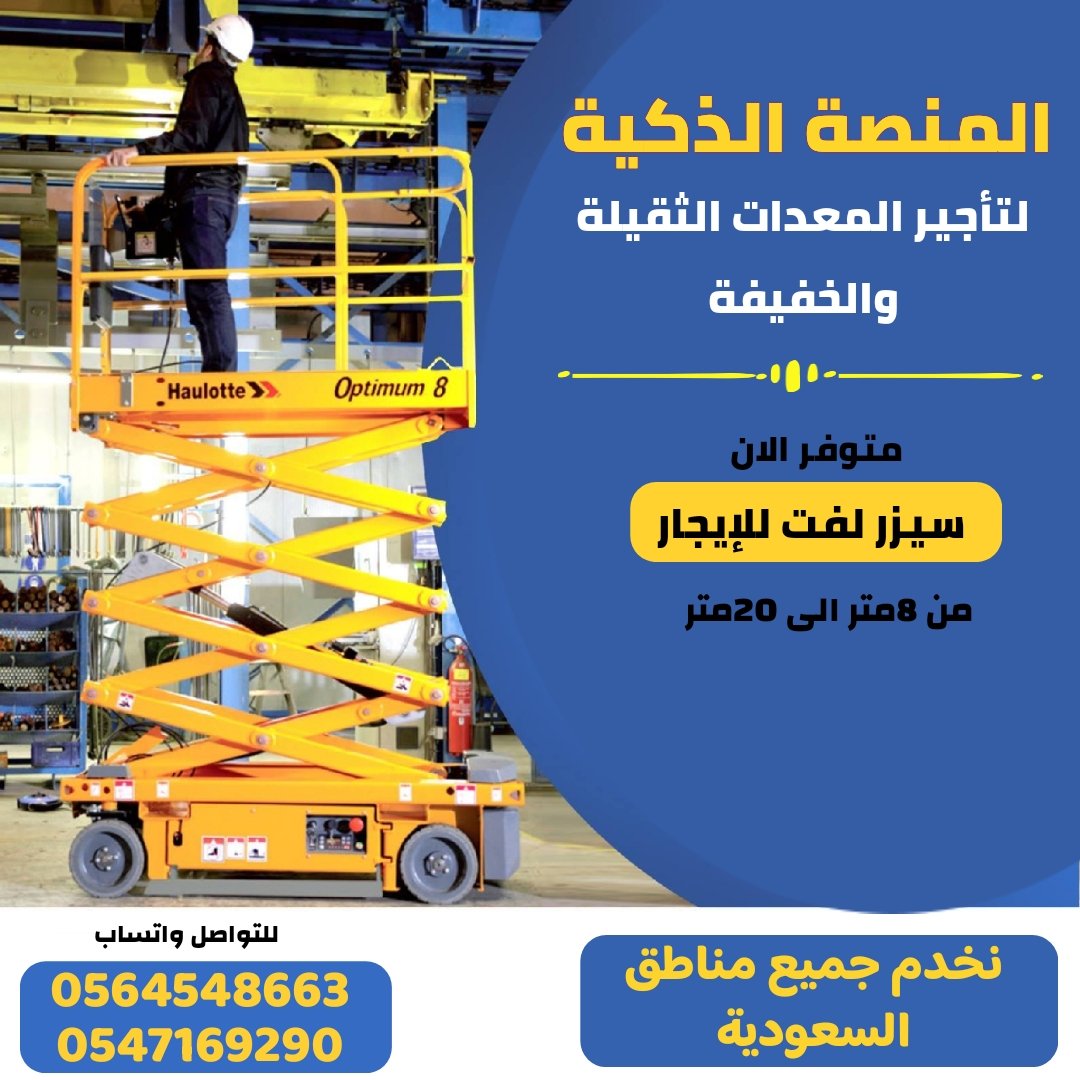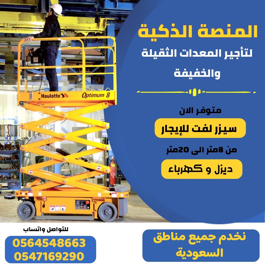 مؤسسة المنصة الذكية لتأجير المعدات الثقيلة والخفيفة نوفر خدمة تأجير سيزر لفت احترافية بموديلات حديثة وارتفاعات متدرجة من 6م إلى 22م، بنوعي التشغيل كهرباء (مثالي للاستخدام الداخلي والصامت) وديزل (مناسب للمواقع الخارجية والأعمال الشاقة). معداتنا تخضع لصيانة دورية وفحص سلامة كامل قبل التسليم، ونقدّم حلول إيجار مرنة (يومي – أسبوعي – شهري) تناسب المقاولين، شركات الصيانة، المتاجر والمستودعات ومشروعات التشطيب. مناطق الخدمة: جدة ، الرياض ، الدمام ، مكة المكرمة ، المدينة المنورة (والتوصيل متاح لباقي مناط