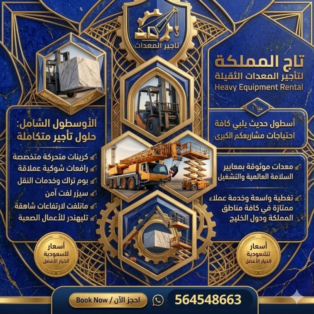 ⭐⭐⭐ تاج المملكة لتأجير المعدات الثقيلة والخفيفة ⭐📞 0564548663 ⭐⭐⭐ سيزر لفت للإيجار في السعودية | مان لفت للإيجار في السعودية | كرينات للإيجار في السعودية | رافعات شوكية فوركلفت للإيجار | رافعات تلسكوبية جي سي بي تليهندر للإيجار | نوفر في تاج المملكة أسطولاً متكاملاً وحديثاً من معدات الرفع المعتمدة والمفحوصة فنياً لتلبية احتياجات المشاريع الكبرى والمصانع والمستودعات وشركات المقاولات وأعمال الصيانة والتركيبات الصناعية في الدمام والرياض وجدة وجميع مناطق المملكة العربية السعودية، حيث يتوفر سيزر ل