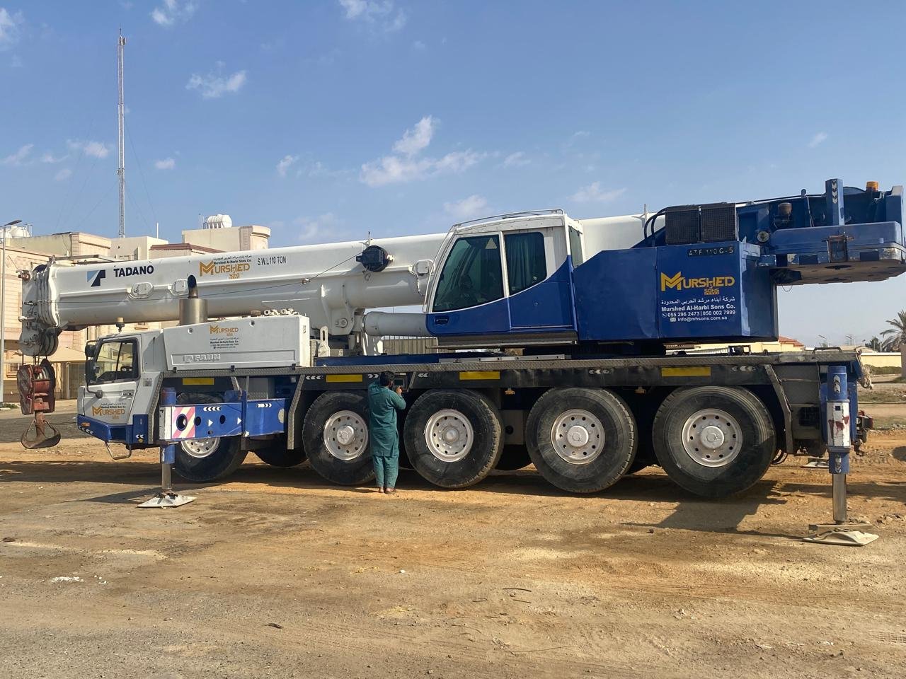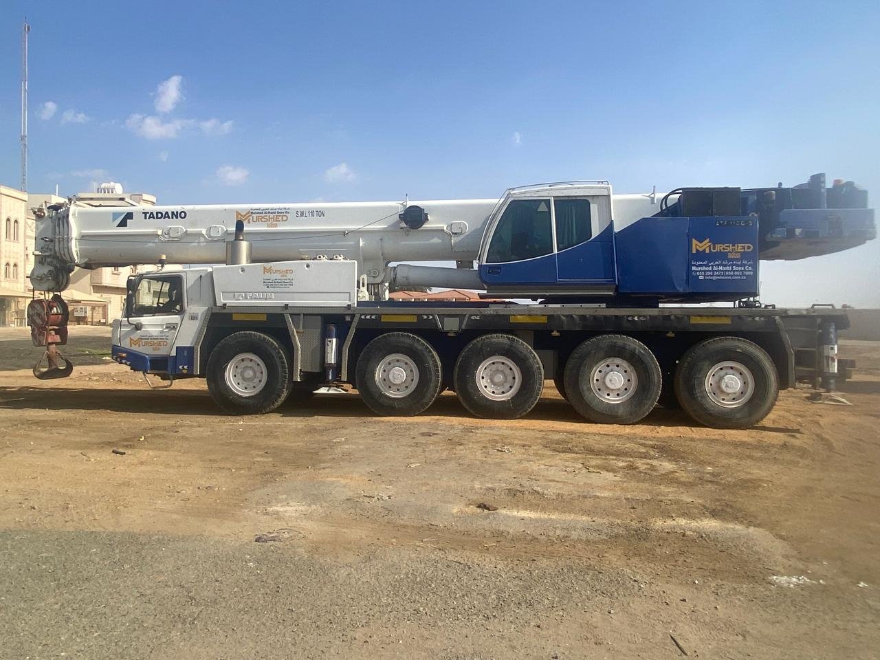 لبيع: رافعة تادانو 110 طن - TADANO AT CRANE بيانات المعدة الأساسية النوع: رافعة للمهمات الشاقة (All Terrain Crane). الماركة: تادانو (Tadano). الحمولة: 110 طن. الموديل: 2008. ساعات العمل: 80,880 ساعة. المحرك: مرسيدس بنز (Mercedes-Benz) ديزل. المواصفات الفنية طول الذراع (الأساسي): من 13 متر حتى 52 متر. وصلة الذراع (Jib): من 3.8 متر حتى 32 متر. أقصى ارتفاع للرأس: 88 متر. نظام الدفع: 10 × 6 × 10. عدد المحاور: 5 محاور. حالة التأمين:ساري
