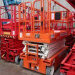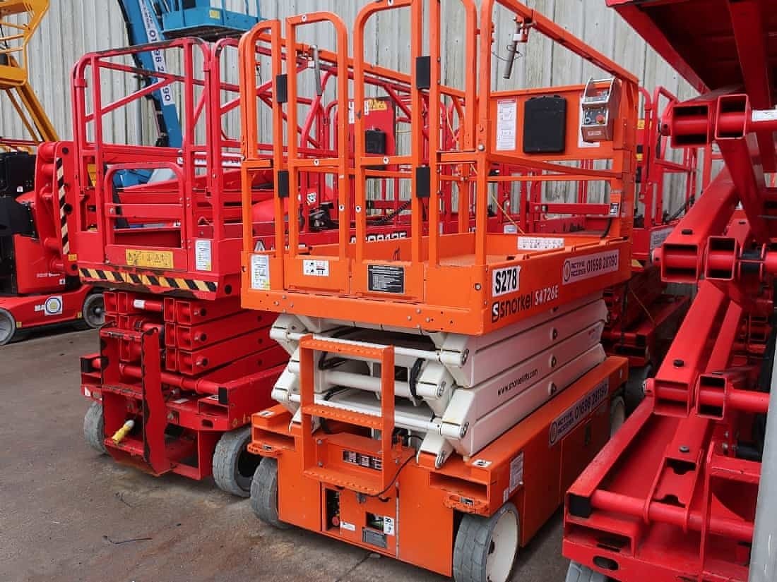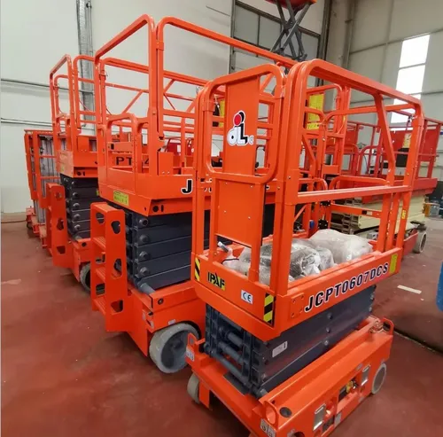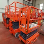 Efficient scissor lift rental for warehouse and factory operations in Dammam, Riyadh, Jeddah, and Makkah with electric and diesel models reaching 10m, 12m, and 14m for maintenance and installation tasks.