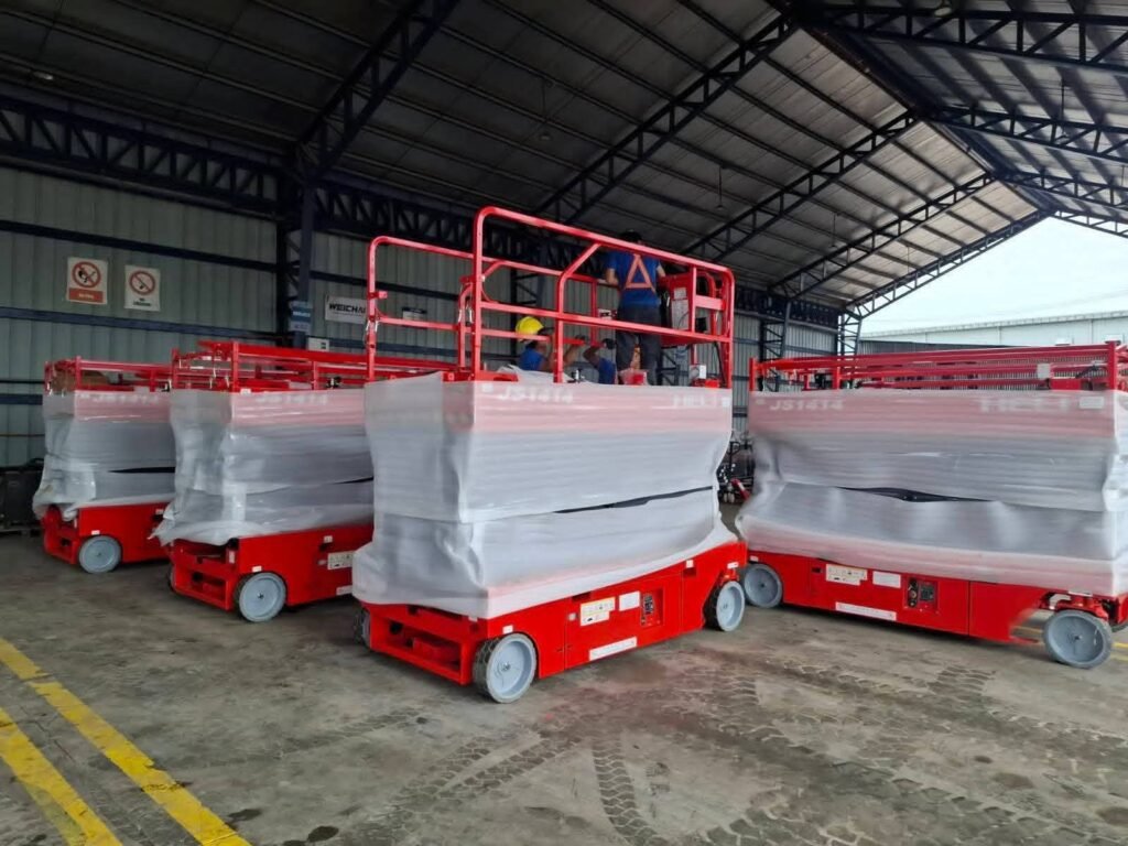 6: ⭐ Taj AlMamlaka Equipment Rental – 0564548663 Modern aerial scissor lift platforms available for rent in Dammam, Riyadh, Jeddah, and Makkah designed for safe work at height in warehouses, factories, and construction projects with heights 8m, 10m, 12m, 14m.