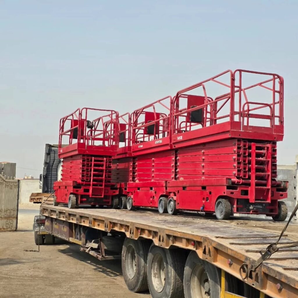 Scissor Lift for rent in Dammam, modern and reliable lifting equipment for maintenance, construction, warehouses, and industrial projects. Safe and efficient for working at height.