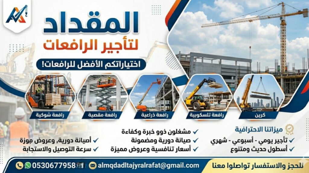المقداد لتأجير الرافعات يقدم خدمة تأجير فوركلفت ومان لفت وسرزر لفت وكرينات في الدمام والرياض والجبيل والقطيف وجدة ومكة وبقيق والخبر.